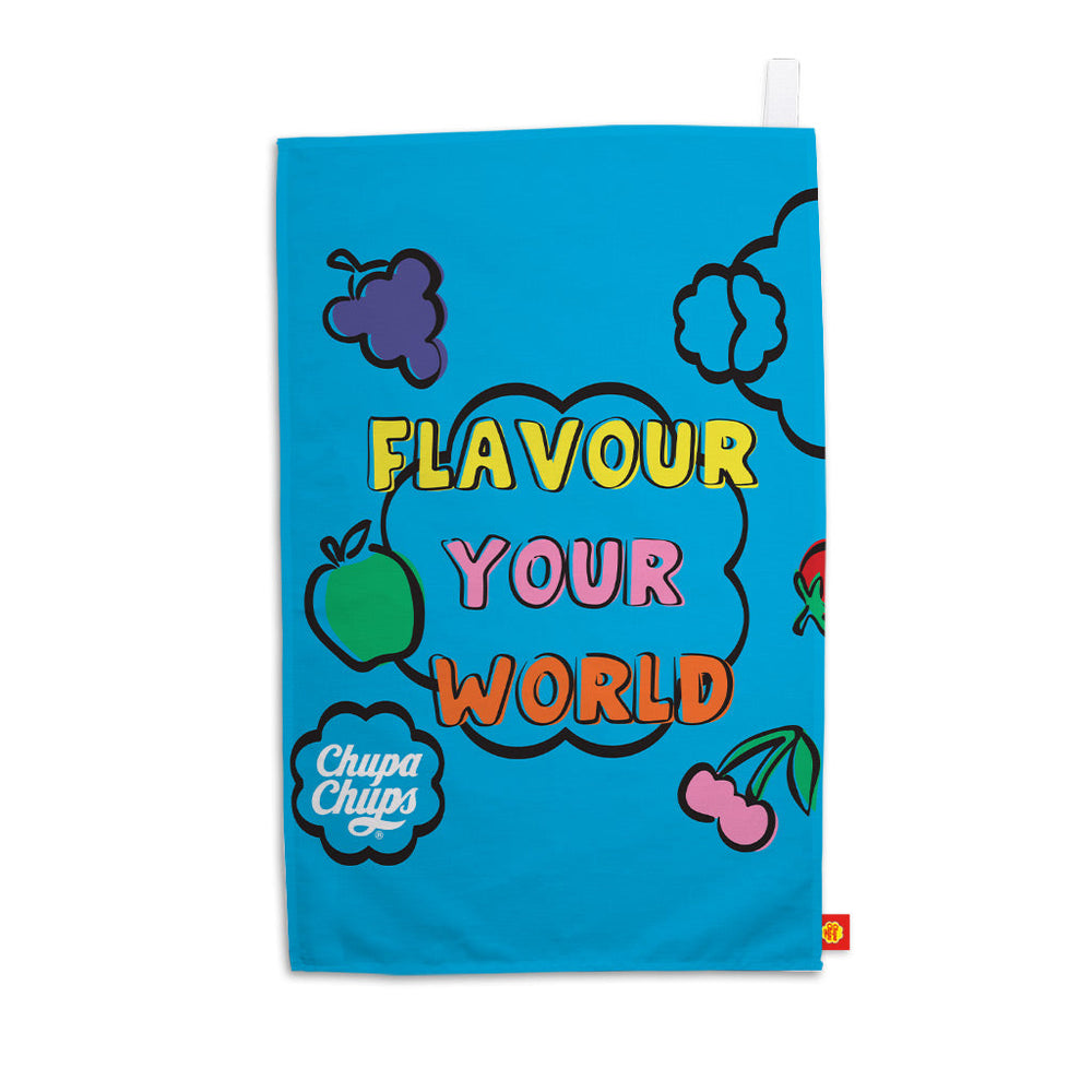 Indulge in the vibrant and playful charm of the Chupa Chups Flavour Your World Tea Towel. Made from premium 100% cotton and expertly hemmed on all four sides, this tea towel is not only practical but also a delightful addition to any kitchen. Its whimsical design features an array of colourful Chupa Chups lollipops, each representing a unique and delicious flavour.