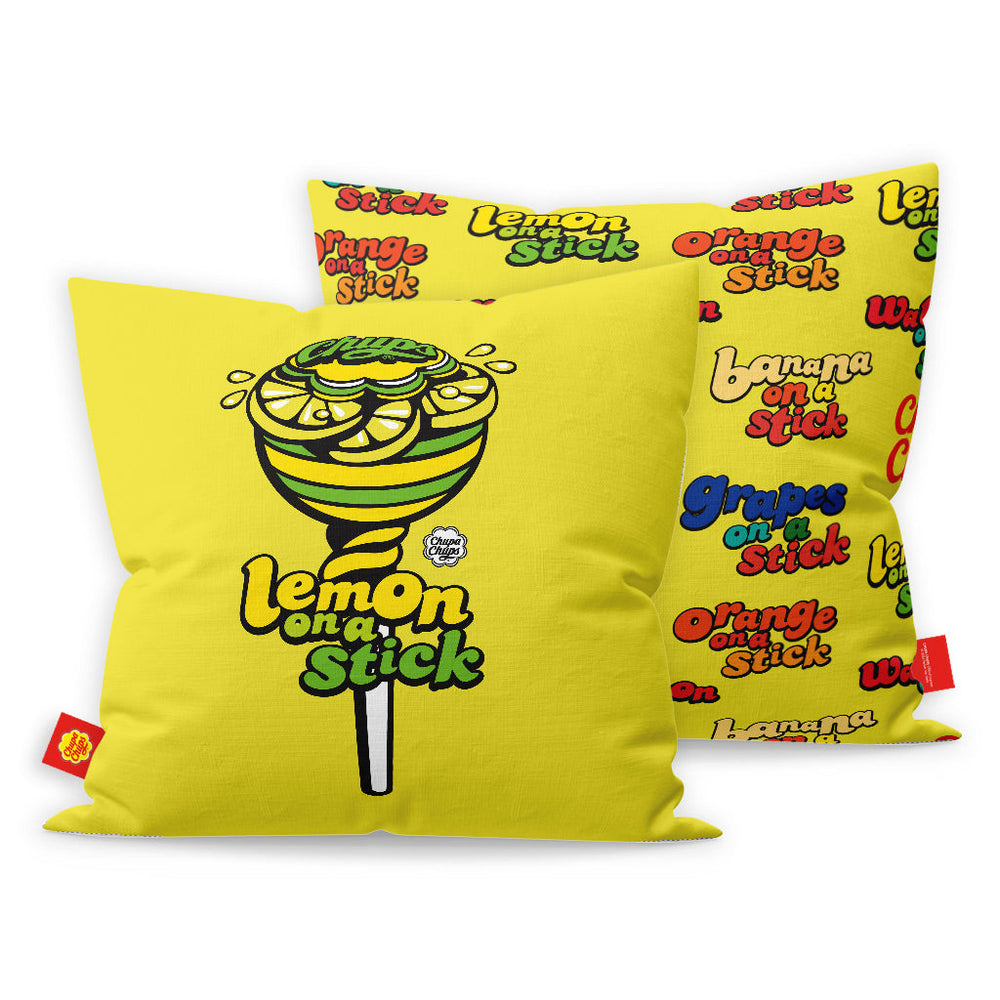 Add a burst of citrusy freshness to your decor with the Chupa Chups Lemon on a Stick Cushion. Measuring 40cm x 40cm, this cushion is crafted from soft-touch faux suede with a microfibre inner for plush comfort. Its playful design features a lemon on a stick, inspired by the iconic Chupa Chups logo. Perfect for adding a pop of colour to your sofa or bed, this cushion is sure to brighten up any room. Bring a taste of tangy sweetness to your home with this delightful Chupa Chups cushion, ideal for fruit lovers and Chupa Chups enthusiasts alike.