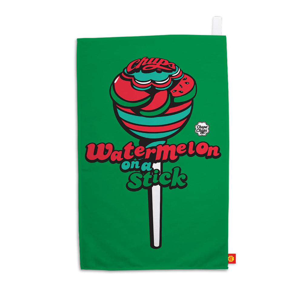 Whether you're drying dishes, lining bread baskets, or simply displaying it as a decorative accent, this tea towel is sure to brighten your day. The convenient hanging loop makes storage a breeze, ensuring that this eye-catching accessory is always within reach. Ideal for Chupa Chups enthusiasts or anyone with a penchant for playful kitchen accessories, this tea towel also makes a thoughtful and unique gift for birthdays, housewarmings, or any occasion. Treat yourself or a loved one to the tropical charm of the Chupa Chups Watermelon on a Stick Tea Towel today!