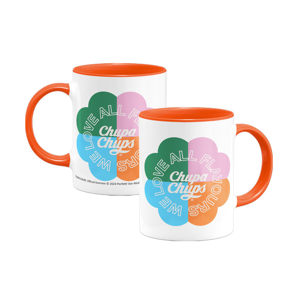 Show your love for all flavours with the Chupa Chups We Love All Flavours Coloured Mug. This 11oz mug features a heartwarming design celebrating the variety of Chupa Chups flavours. Crafted with a durable Duraglaze coating, independently tested in the UK for dishwasher and microwave safety, this mug combines functionality with style. Proudly printed in the UK, it adds a cheerful vibe to your coffee or tea time, ensuring durability and vibrant colours with every use.