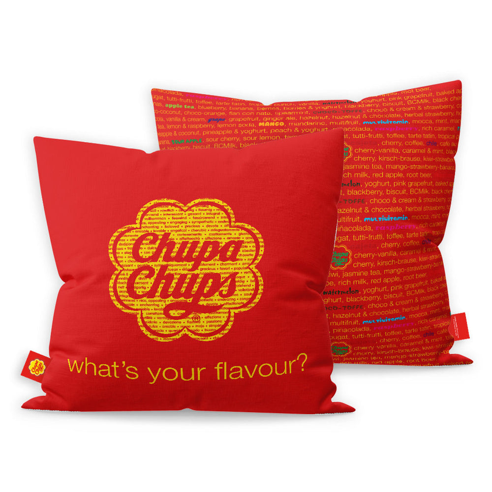 Indulge in sweet comfort with the Chupa Chups What's Your Flavour? Cushion. Measuring 40cm x 40cm, this cushion is crafted from soft-touch faux suede with a microfibre inner for luxurious relaxation. Its vibrant design features iconic Chupa Chups flavours, adding a pop of colour to any space. Ideal for lounging or adding a playful touch to your decor, this cushion is both stylish and comfortable. Bring a touch of nostalgia to your home with this delightful Chupa Chups cushion, perfect for Chupa Chups enthusiasts and anyone with a sweet tooth.