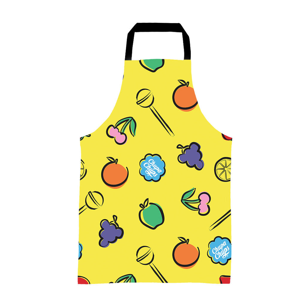 Introducing the Chupa Chups Yellow Fruit Pattern Apron, a delightful addition to your kitchen attire. Made from 100% cotton, this apron boasts durability and comfort, perfect for culinary adventures. Proudly printed and hand-sewn in the UK, it reflects quality craftsmanship and attention to detail. Available in two sizes, catering to both adults and kids aged 3-7, ensuring a perfect fit for all. Embrace the vibrant colours and playful design of Chupa Chups as you cook up a storm. Add a touch of sweetness to your cooking routine with this charming apron!