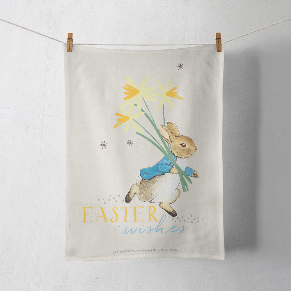 Welcome the Easter season with the delightful Easter Wishes Tea Towel from our special Easter Collection. This charming tea towel features an adorable illustration of Peter Rabbit, ready to wish you a very festive springtime! With its sweet and vibrant design, this tea towel is sure to bring some extra joy and cheer to your kitchen.