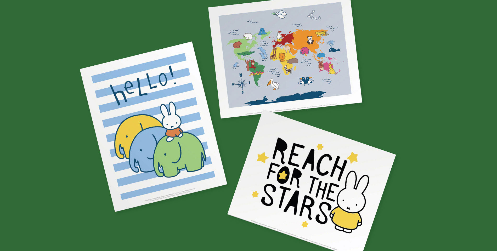 Fun miffy fact: Whatever his characters are doing in the books, Dick Bruna always draws them looking straight at the reader, they never appear in profile. Go see for yourself while looking through our enormous miffy gift collection, including some of our favourite miffy art prints, cushions, tote bags and more!